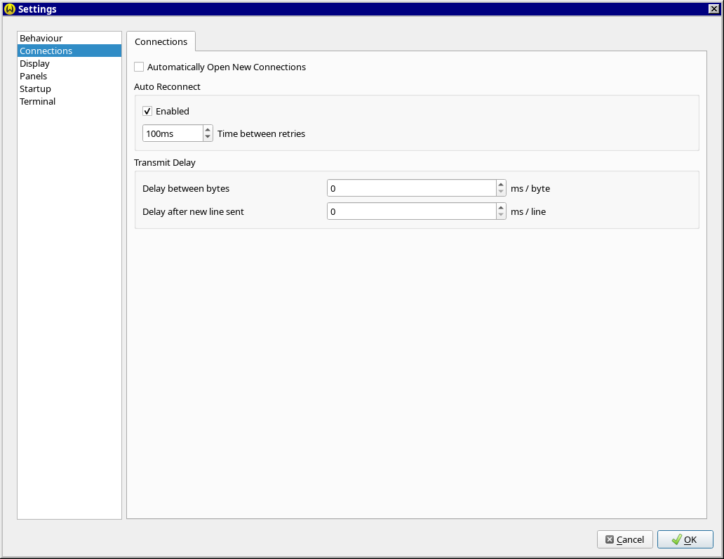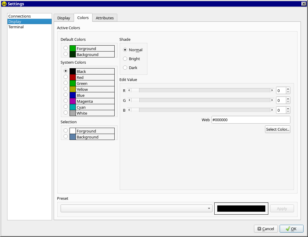 A number of settings can be set per connection. This allows you to change the data processor, terminal size, font's, and such so that each one behaves differently.