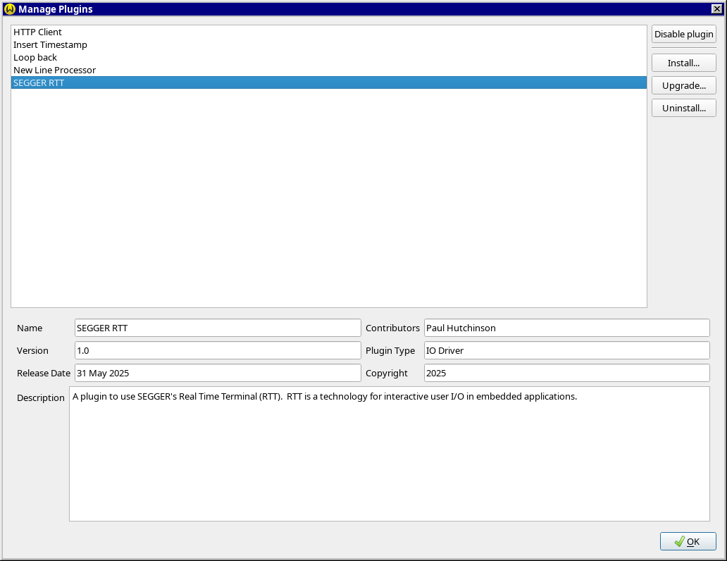 WhippyTerm supports an extensive plugin system to expand it's abilities beyond the core set. Plugins can add new communication protocols, new text processing type, filtering of text and binary data, and new transfer protocols. The list of plugin is always expanding.