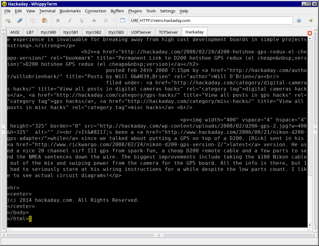 WhippyTerm is a modern terminal program. It has been designed to have a modern UI and to run on modern OS's like Windows and Linux. It also has a number of unique features such as bookmarks, built in hex dumps, extending through plugins, and native support for binary protocols.